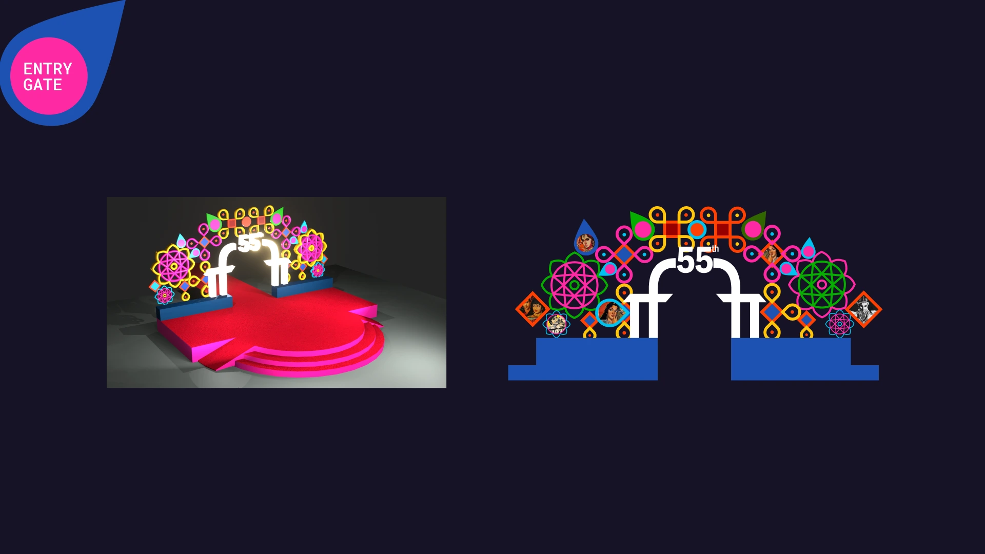 The brief was to design a comprehensive visual identity for a prestigious film festival celebrating Indian cinema, capturing the essence of Bollywood through a large-scale public event.