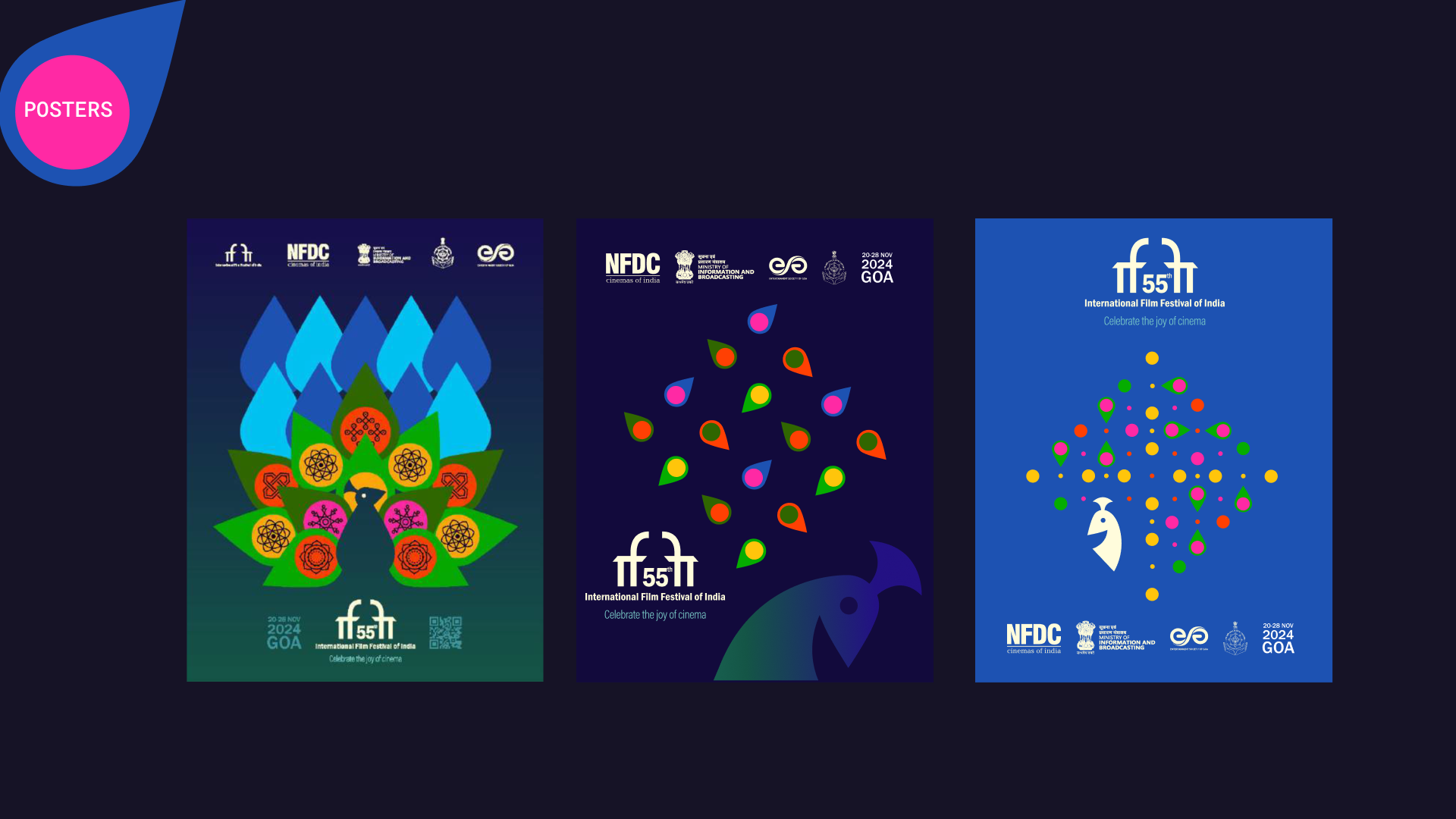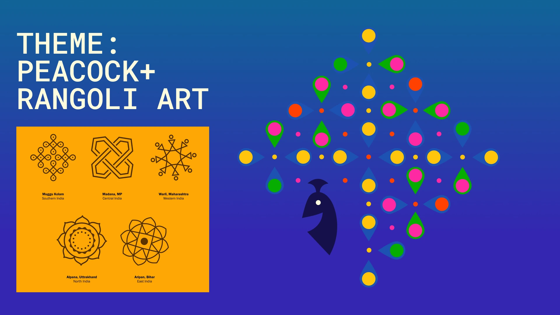 Drawing inspiration from the brief's key words β "peacock" and "rangoli" β we focused on a color palette bursting with energy and utilized simple, recognizable shapes derived from Kolam to evoke the spirit of Indian cinema.